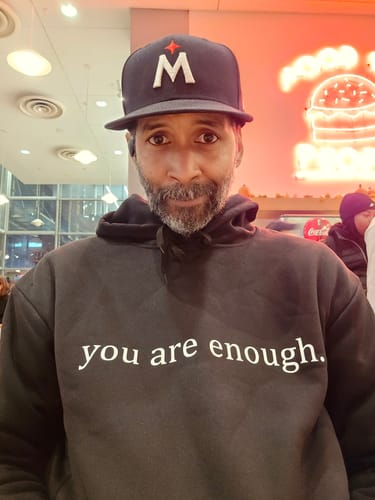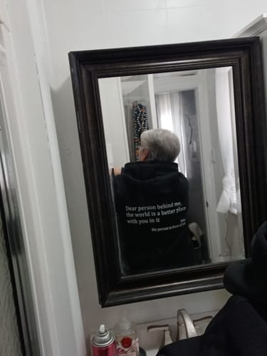 "Very anxious and excited to receive my hoodie. Perfect fit! Wore it to the pharmacy and grocery store the first day and had a few acknowledgements. I wore it yesterday to my granddaughters therapy appointment at our local mental health center. I had a client comment on the power of the message and stated how wonderful it would be to have more kindness in this world. Such a great feeling to know that you can make an impact with such a small gesture of affirmation."